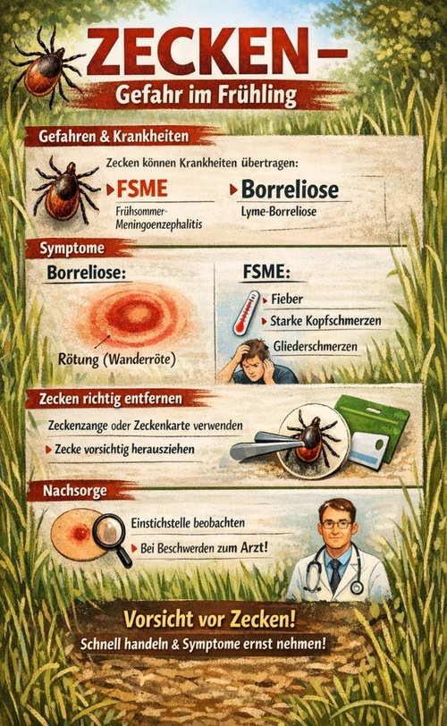 Zecke möglichst schnell entfernen, mit einer Zeckenzange oder Zeckenkarte